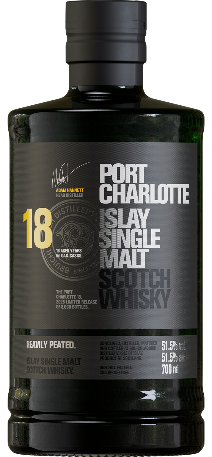 Fabriqué avec de l'orge 100 % écossaise, Port Charlotte 18 ans d'âge a été conçu, distillé, mûri et mis en bouteille exclusivement sur l'île d'Islay, notre île natale.