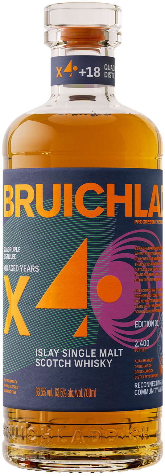 Unique en son genre – un whisky écossais single malt distillé quatre fois et vieilli 18 ans sur l'île d'Islay – X4+18 incarne l'esprit novateur et la patience inébranlable de Bruichladdich.
